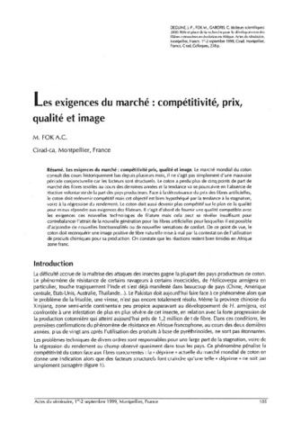 2000. Les exigences du marché : compétitivité, prix, qualité et image.