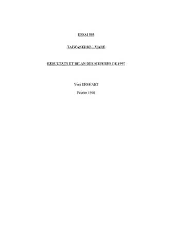 Ehrhart Yves. 1998. Essai 505. Taivanedre - Maré. Résultats et bilan des mesures de 1997. Montpellier : CIRAD-Forêt, 20 p.