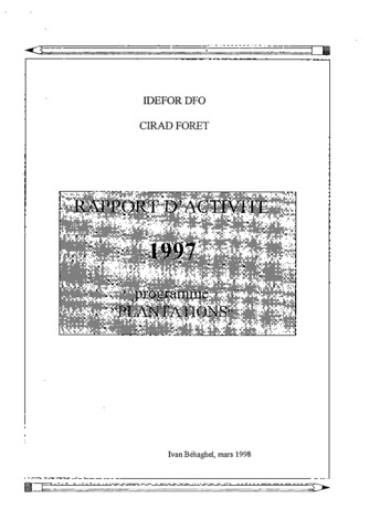 Béhaghel Ivan. 1998. Rapport d'activité 1997. Programme "Plantations". Montpellier : CIRAD-Forêt, 25 p.