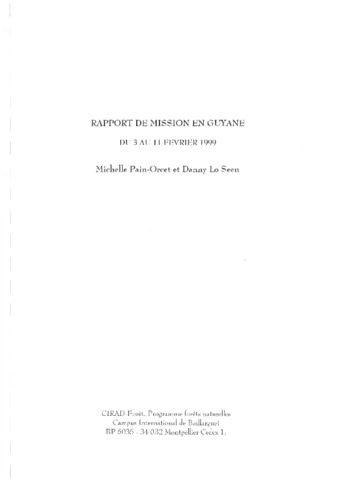 Pain-Orcet Michelle, Lo Seen Danny. 1999. Rapport de mission en Guyane du 3 au 11 février 1999. Montpellier : CIRAD-Forêt, 32 p.
