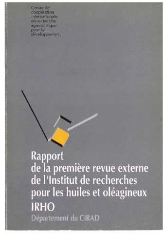 CIRAD-IRHO - FRA. 1990. Rapport de la première revue externe de l'Institut de Recherches pour les Huiles et Oléagineux, IRHO, département du CIRAD. Paris : CIRAD-IRHO, 140 p. ISBN 2-87614-043-8