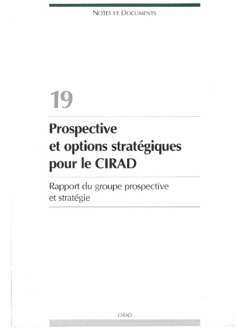 CIRAD - FRA. 1994. Prospective et options stratégiques pour le CIRAD. Rapport du groupe prospective et stratégie. Paris : CIRAD, 128 p. (Notes et documents / CIRAD, 19) ISBN 2-87614-190-6