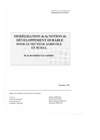 Griffon Michel, Matéo Séverine, Piketty Marie-Gabrielle, Réolon Françoise. 1995. Modélisation de la notion de développement durable pour le secteur agricole et rural. De la durabilité à la viabilité. Paris : CIRAD-URPA, 309 p.