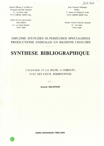 Delafosse Arnaud. 1993. L'élevage et la pêche à Djibouti : état des lieux, perspectives. Maisons-Alfort : CIRAD-EMVT, 46 p. Mémoire DESS (Synthèse bibliographique) : Productions Animales en Régions Chaudes : Ecole nationale vétérinaire d'Alfort