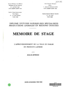 El Ketrouci A.. 1993. L'approvisionnement de la ville de Dakar en produits laitiers. Maisons-Alfort : CIRAD-EMVT, 110 p. Mémoire DESS : Productions Animales en Régions Chaudes : Ecole nationale vétérinaire d'Alfort