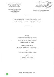 Autre titre : Survey about cattle rearing systems in the Zou region (Republic of Benin) : comparison between on autochthonous village rearing and an interstitial peuhl rearing