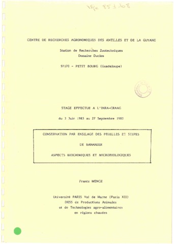 Mence F.. 1985. Conservation par ensilage des feuilles et stipes de bananier. Aspects biochimiques et microbiologiques. Maisons-Alfort : CIRAD-IEMVT, 141 p. Mémoire DESS : Productions Animales en Régions Chaudes : Université de Paris-Val-de-Marne