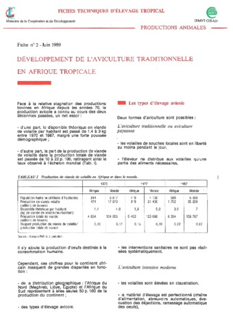 Christy Philippe. 1989. Développement de l'aviculture traditionnelle en Afrique tropicale. Maisons-Alfort : CIRAD-IEMVT, 8 p. (Fiches techniques d'élevage tropical, n. 2)