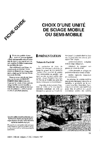CIRAD-FORET - FRA, CTBA - FRA, Centre technique du papier - FRA. 1993. Choix d'une unité de sciage mobile ou semi-mobile. Bois et Forêts des Tropiques (236) : 69-74.