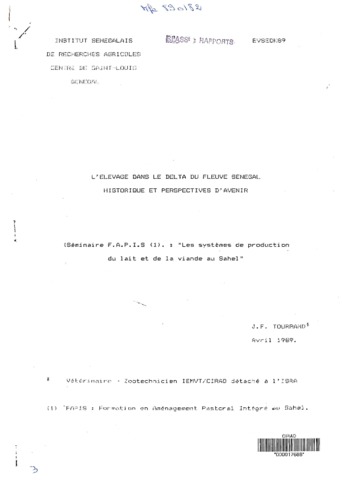1989. L'élevage dans le delta du fleuve Sénégal. Historique et perspectives d'avenir.