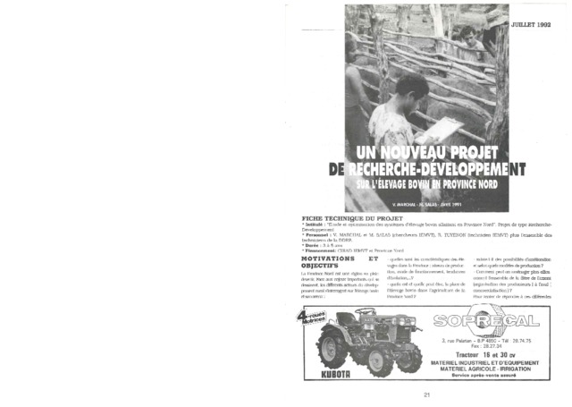 Marchal Valérie, Salas Michel. 1992. Un nouveau projet de recherche-développement sur l'élevage bovin en Province Nord Nouvelle-Calédonie. Bulletin de Liaison et d'Information - Union Néo-Calédonienne de Sélection et de Promotion des Races Bovines (23) : 21-22.