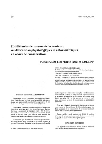 Titre anglais : Studies on lime coloration. II. Methods of measuring color : physiologic and colorimetric modifications during conservation