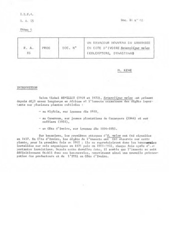 1985. Un nouveau ravageur du bananier en Côte d'Ivoire, Heteroligus meles (Coléoptère, Dynastinae).