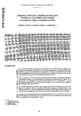 Autre titre : Prospects for the modelling of village agrarian systems : the example of the cotton growing regions in Mali