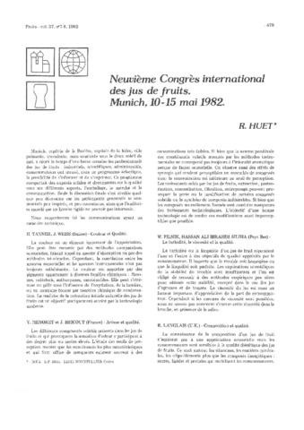 Huet Raymond. 1982. Neuvième Congrès International des Jus de Fruits. Munich, 10-15 mai 1982. Fruits, 37 (7-8) : 479-481.