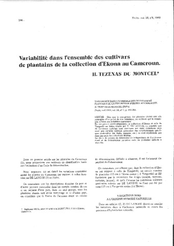 Tézenas Du Montcel Hugues. 1983. Variabilité dans l'ensemble des cultivars de plantains de la collection d'Ekona au Cameroun. Fruits, 38 (4) : 246-255.