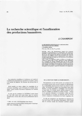 Champion Jean. 1984. La recherche scientifique et l'amélioration des productions bananières. Fruits, 39 (1) : 28-32.