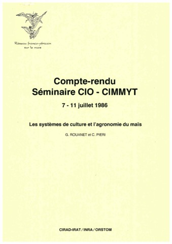 1987. Les systèmes de culture et l'agronomie du maïs.