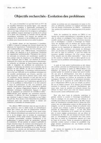 CIRAD-IRFA - FRA. 1987. Objectifs recherchés - Evolution des problèmes. Fruits, 42 (11) : 625.