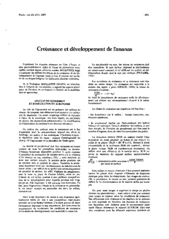 CIRAD-IRFA - FRA. 1987. Inventaire et état des recherches de l'IRFA sur ananas (septembre 1986) : Croissance et développement de l'ananas. Fruits, 42 (11) : 651-654.