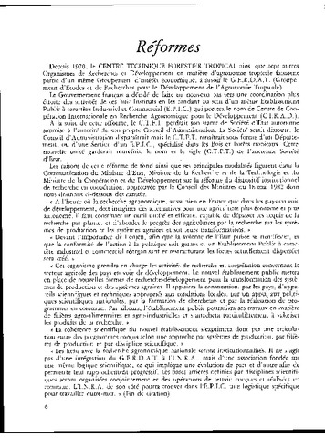GERDAT-CTFT - FRA. 1983. Réformes. Bois et Forêts des Tropiques (200) : 6.