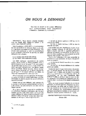 GERDAT-CTFT - FRA. 1983. "On nous a demandé". Bois et Forêts des Tropiques (201) : 76.
