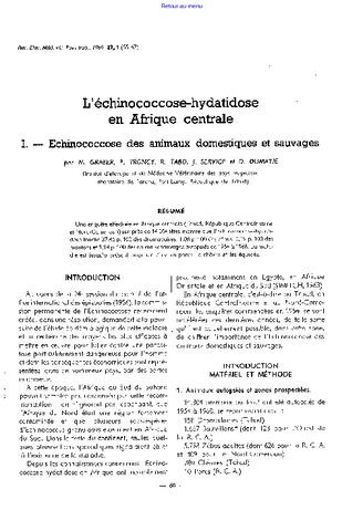 Graber Michel, Troncy Pierre-Maurice, Tabo R.. 1969. L'échinococcose-hydatidose en Afrique centrale. I.. Revue d'Elevage et de Médecine Vétérinaire des Pays Tropicaux, 22 (1) : 55-67.