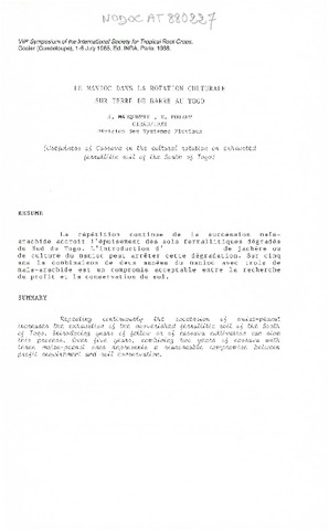 Titre anglais : Usefulness of cassava in the cultural rotation on exhausted ferrallitic soil of the South of Togo