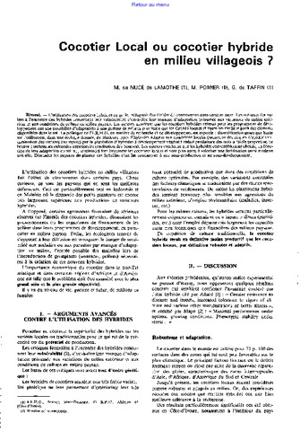 De Nucé De Lamothe Michel, Pomier M., De Taffin Gabriel. 1983. Cocotier local ou cocotier hybride en milieu villageois?. Oléagineux, 38 (3) : 183-191.