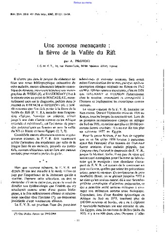 Provost Alain. 1980. Une zoonose menaçante : la fièvre de la Vallée du Rift. Revue d'Elevage et de Médecine Vétérinaire des Pays Tropicaux, 33 (1) : 11-14.