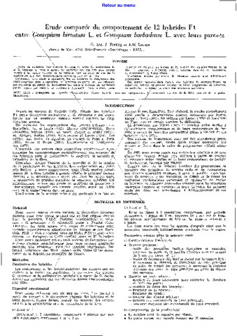 Titre anglais : Comparative study of the performance of 12 F 1 hybrids between Gossypium hirsutum L. and Gossypium barbadense with their parents