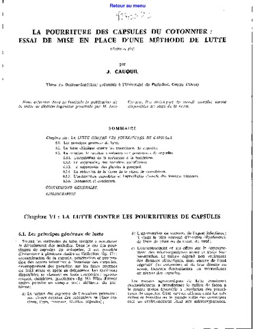 Cauquil Jean. 1973. La pourriture des capsules du cotonnier : essai de mise en place d'une méthode de lutte (suite et fin). Coton et Fibres Tropicales, 28 (4) : 535-561.
