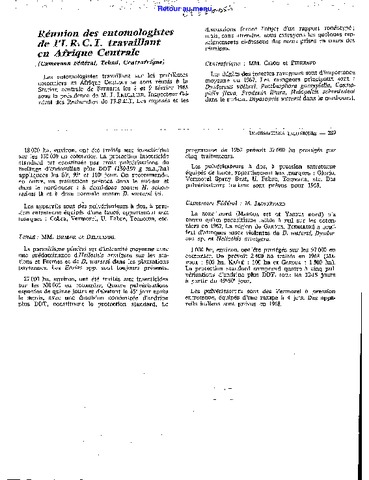 IRCT [Guadeloupe] - GLP. 1968. Réunion des entomologistes de l'I.R.C.T. travaillant en Afrique Centrale (Cameroun Fédéral, Tchad, Centrafrique). Coton et Fibres Tropicales, 23 (2) : 288-289.