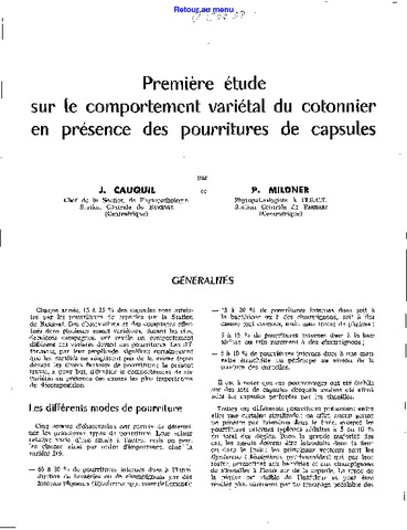 Cauquil Jean, Mildner P.. 1965. Première étude sur le comportement variétal du cotonnier en présence des pourritures de capsules. Coton et Fibres Tropicales, 20 (4) : 539-548.