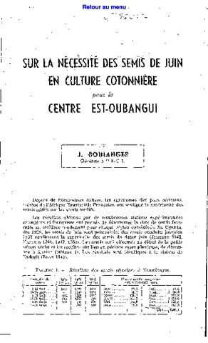 Boulanger J.. 1956. Sur la nécessité des semis de juin en culture cotonnière pour le Centre-Est-Oubangui. Coton et Fibres Tropicales, 11 (1) : 9-22.