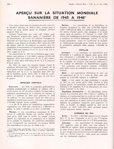 Cadillat R.M., Naville R.. 1948. Aperçu sur la situation mondiale bananière de 1945 à 1948. Fruits, 3 (10) : 390-393.