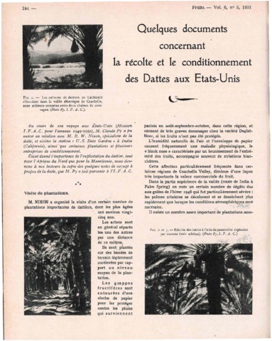 Py Claude. 1951. Quelques documents concernant la récolte et le conditionnement des dattes aux Etats-Unis. Fruits, 6 (5) : 194-196.
