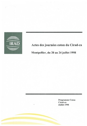 In : Actes des journées coton du CIRAD-CA, Montpellier, du 20 au 24 juillet 1998. CIRAD-CA-COTON