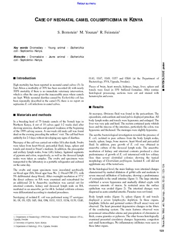 Titre espagnol : Un caso neonatal de coliseptisemia en un camello en Kenia / Titre anglais : Case of neonatal camel colisepticemia in Kenya
