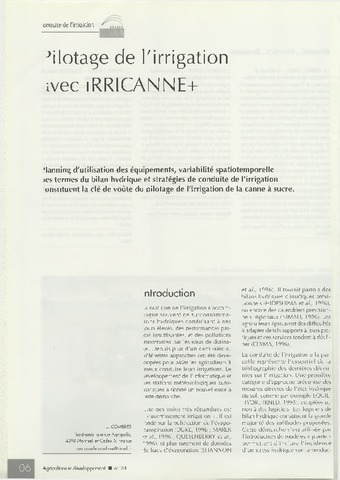 Combres Jean-Claude. 1999. Pilotage de l'irrigation avec IRRICANNE+. Agriculture et Développement (24) : 106-113.