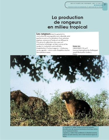 Jori Ferran. 2001. La production de rongeurs en milieu tropical. Bois et Forêts des Tropiques (269) : 31-41.