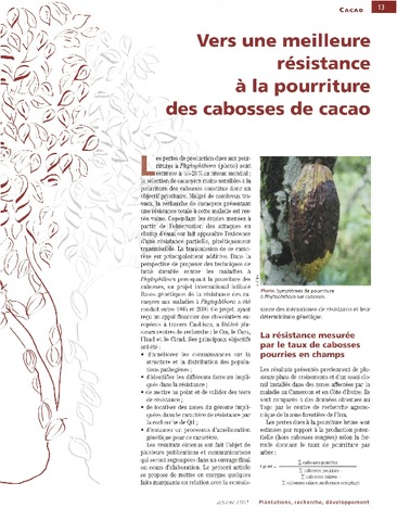 2001. Vers une meilleure résistance à la pourriture des cabosses de cacao.