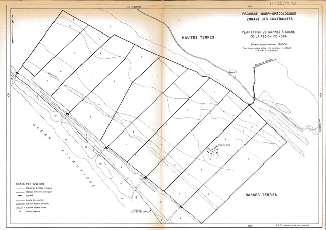 Guillobez Serge. 1983. Esquisse morphopédologique. Zonage des contraintes. Plantation de cannes à sucre de la région de Koba. Montpellier : GERDAT-IRAT. Service de cartographie, 1 carte , échelle : 1:20000