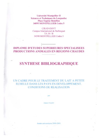 Villon Hubert. 2001. Un cadre pour le traitement du lait à petite échelle dans les pays en développement. Conditions de réalisation. Montpellier : UM2, 47 p. Mémoire DESS (Synthèse bibliographique) : Productions animales en régions chaudes : Université Montpellier 2