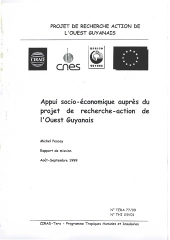 Pescay Michel. 1999. Appui socio-économique auprès du projet de recherche-action de l'ouest guyanais : rapport de mission en Guyane (du 5 au 17 juillet 1999). Montpellier : CIRAD-TERA, 56 p. N° de rapport : CIRAD-TERA N°77/99