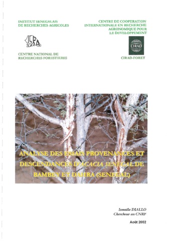 Diallo Ismaila. 2002. Analyse des essais provenances et descendances d'Acacia senegal de Bambey et Dahra (Sénégal). s.l. : s.n., 42 p.