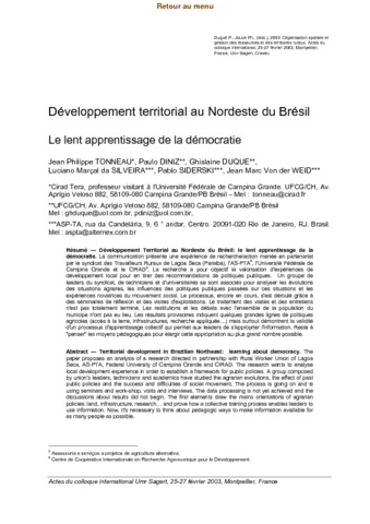 Titre anglais : Territorial development in Brazilian Northeast : learning about democracy