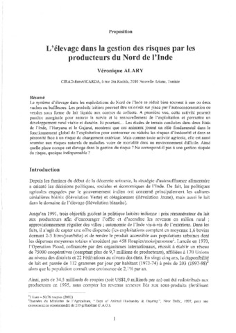 2003. L'élevage dans la gestion des risques par les producteurs du Nord de l'Inde.