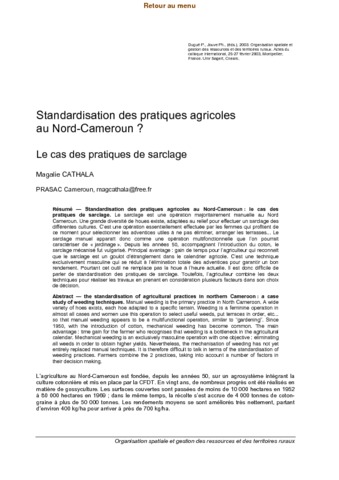 Titre anglais : The standardisation of agricultural pratices in northern Cameroon : a case study of weeding techniques