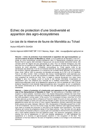 2003. Echec de protection d'une biodiversité et apparition des agro-écosystèmes. Le cas de la réserve de faune de Mandélia au Tchad.